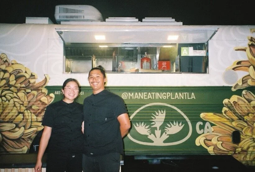 MANEATINGPLANT is a restaurant concept born in the summer of 2018 as a humble tent popup in Torrance, CA. Partners and chefs Candice Tzeng and Phil Kwan co-created the concept with the desire to share their plant-based perspective on the Chinese, Taiwanese, and Japanese flavors they grew up with. In 2021, MANEATINGPLANT launched their school bus food truck, Olive, that currently serves communities from Los Angeles to San Diego.